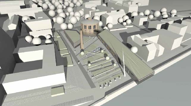 gibt es mittlerweile konkrete Planungen, diese 1a-Lage zur städtebaulichen Innenstadt werden zu lassen. Es ist zu erwarten, dass hier die übliche Zentrums-Quaderbebauung stattfindet.