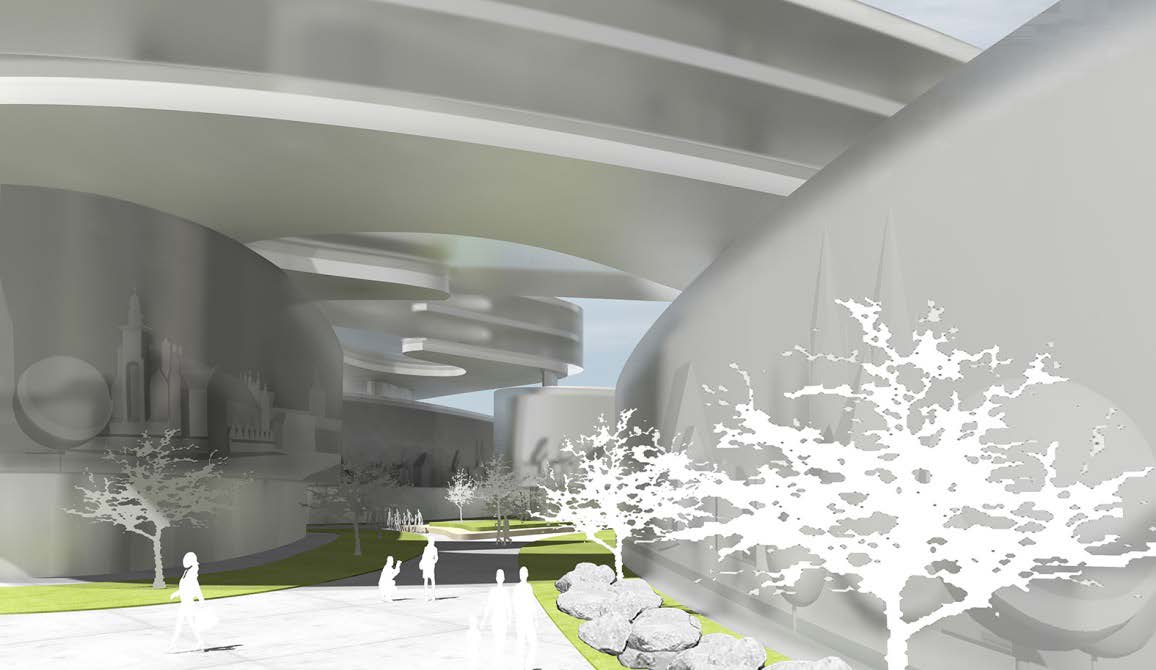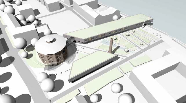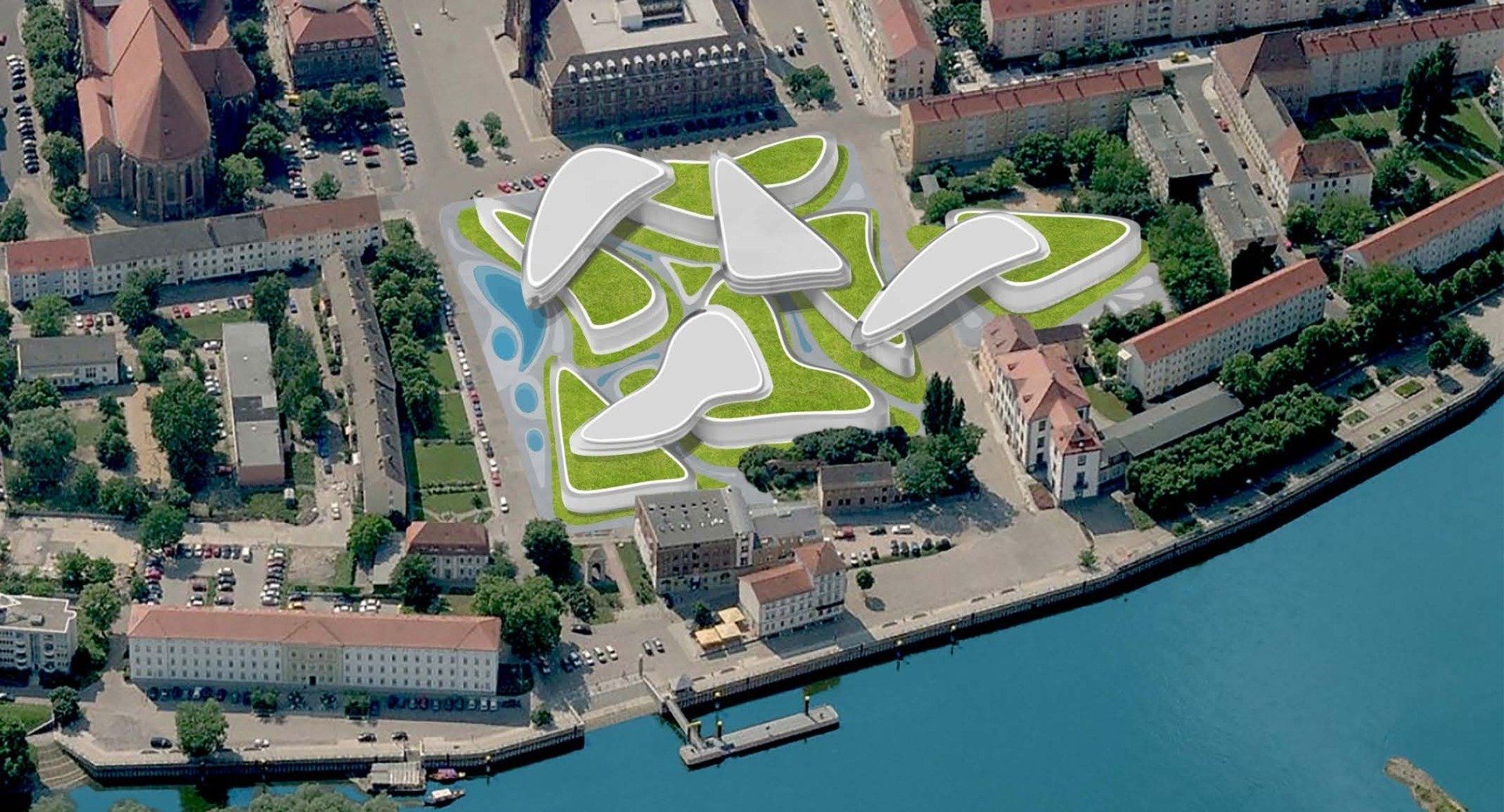 Bei der Ideensuche hatten wir eine etwas andere Vorstellung. Etwas identitätsstiftendes, da sich das Terrain unmittelbar neben der Frankfurter Konzerthalle befindet und diesen kulturellen Bereich durchaus mit erlebbaren Nutzungen ergänzen könnte.