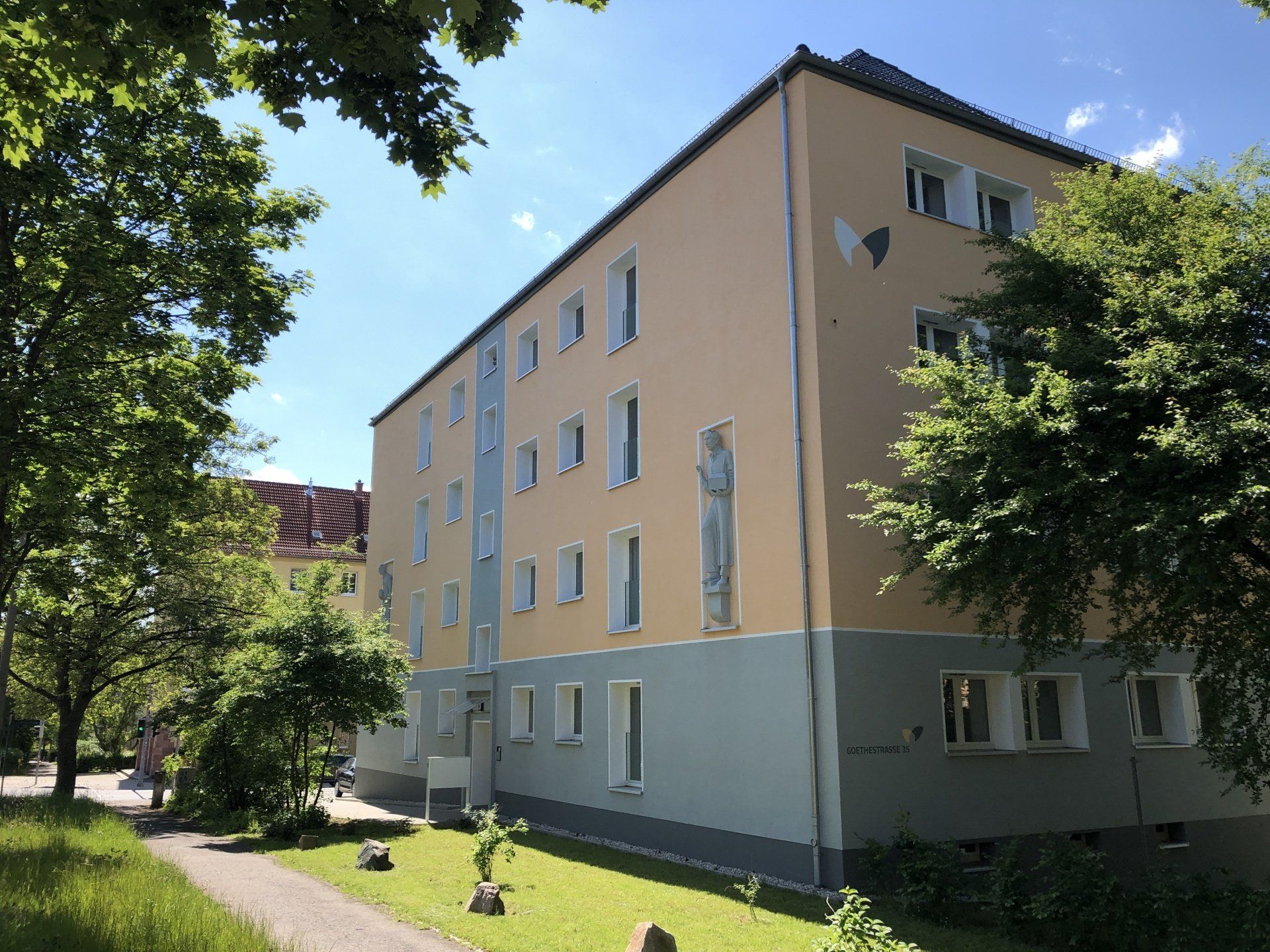 Im Jahr 1990 begann unmittelbar nach dem Abschluss des Studium mein Werdegang als Bauingenieur. Ich habe das damals und noch heute als Glück und als Chance empfunden. Nach der Wiedervereinigung und der damit einhergehenden Neuorientierung des genossenschaftlichen Wohnungssektors, begannen wir mit Kleinmaßnahmen, wie Fenstertausch, wohnungsbezogne Heizungserneuerungen und, dem Thema meiner Ingenieurarbeit folgend, mit Schornsteinsanierungen. Das Wohn- und Geschäftshaus Goethestraße 35 war mein erstes umfängliches Projekt. Fassade, Dach und Wohnungen wurden saniert und das brachliegende Nebengelass in eine Verkaufseinrichtung umgewandelt.